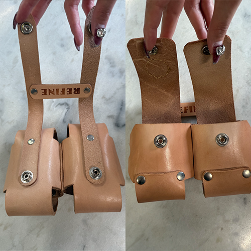 Refineのロゴの部分には長野県南信州で有害駆除された鹿革を使用しています。